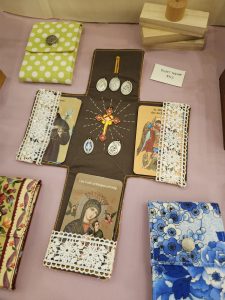 The one item I was most taken by this year is the Pocket Shrine by @deckleedgesmake, a design masterpiece to encourage prayer anywhere. The rectangular fabric pouch folds out into a shape of a cross to display medals and prayer cards, making it mini portable altar. Light and nifty, this can be taken on travels, and to very quickly and assemble a prayer space in one’s hotel room.